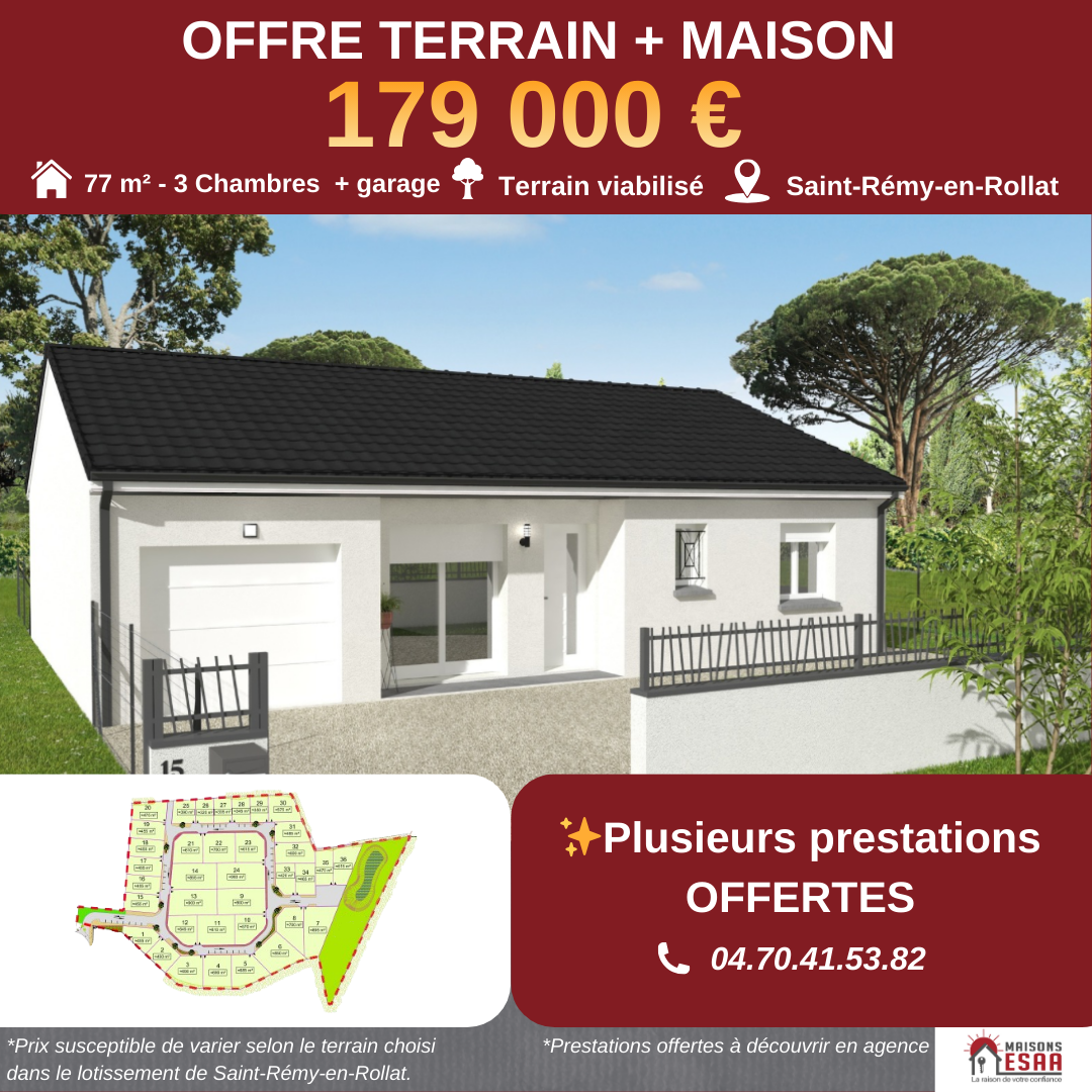 *Prix susceptible de varier selon le terrain choisi dans le lotissement de Saint-Rémy-en-Rollat.